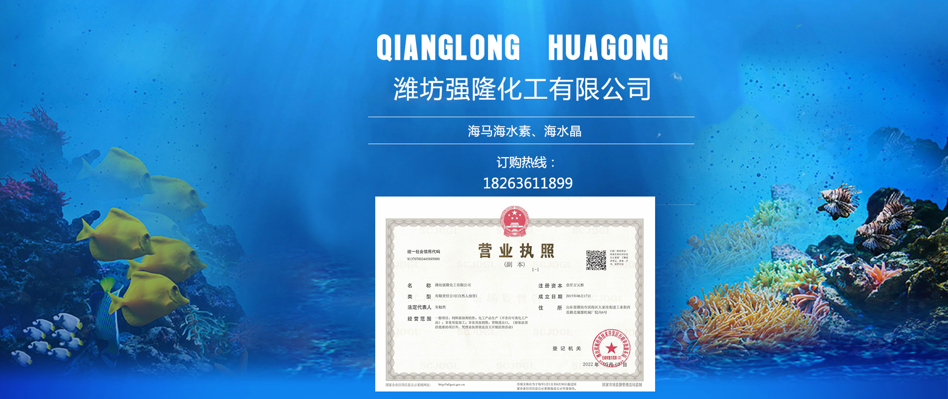 濰坊強隆化工有限公司是一個集生產、科研創新于一體的公司,主要生產銷售海水素、海水晶、工業鹽、腌制鹽、飼料添加劑(氯化鈉)。海水素和海水晶都是海水的替代產品,主要是通過對海水或鹵水進行蒸發、離心、濃縮等一系列過程生產出來的。海水素是替代海水的高端產品,較大限度地還原了海水成份,主要作用是水族館、海洋世界海獸、熱帶魚和珊瑚的長期飼養,許多海洋館都是我們長期、穩定的用戶;海水晶是替代海水的中檔產品,主要用于海鮮的長途運輸,還有酒店和海鮮市場的海鮮暫養,本產品立足山東,又和全國廣大省、直轄市的客戶建立了長久的合作關系。本公司的海水鹽、腌制鹽結晶均勻、顏色純凈、無污染,腌制的產品味道純正,是各大企業及醬菜廠的理想選擇。